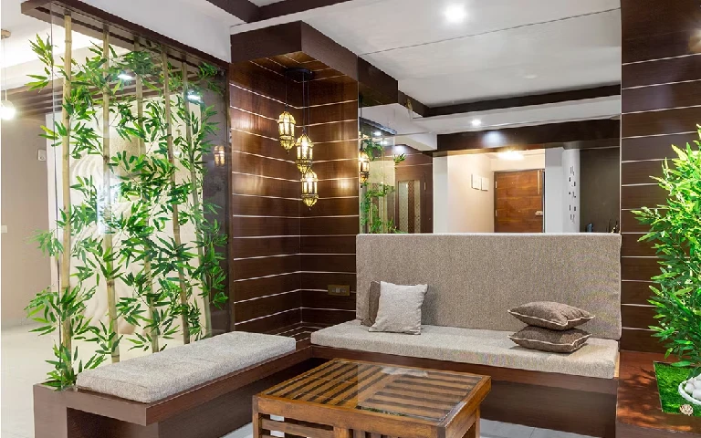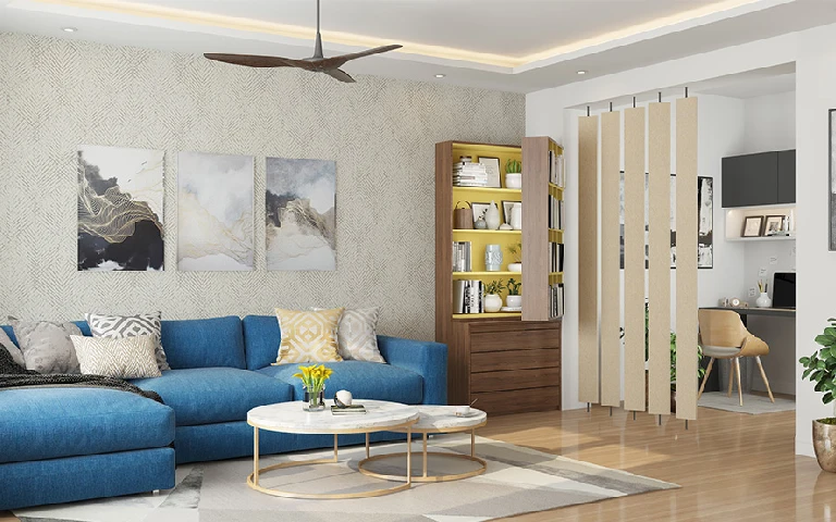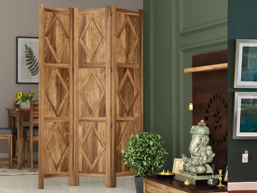 Wooden screens are a top choice for hall partition design. These screens offer warmth, texture, and an artistic touch to your space. Whether intricately carved or featuring geometric designs, wooden screens blend seamlessly with various interior styles. They strike a balance between functionality and aesthetics, providing privacy while enhancing the room’s overall appeal. Wooden screens are a timeless choice for those looking to create a cozy and inviting living room atmosphere.